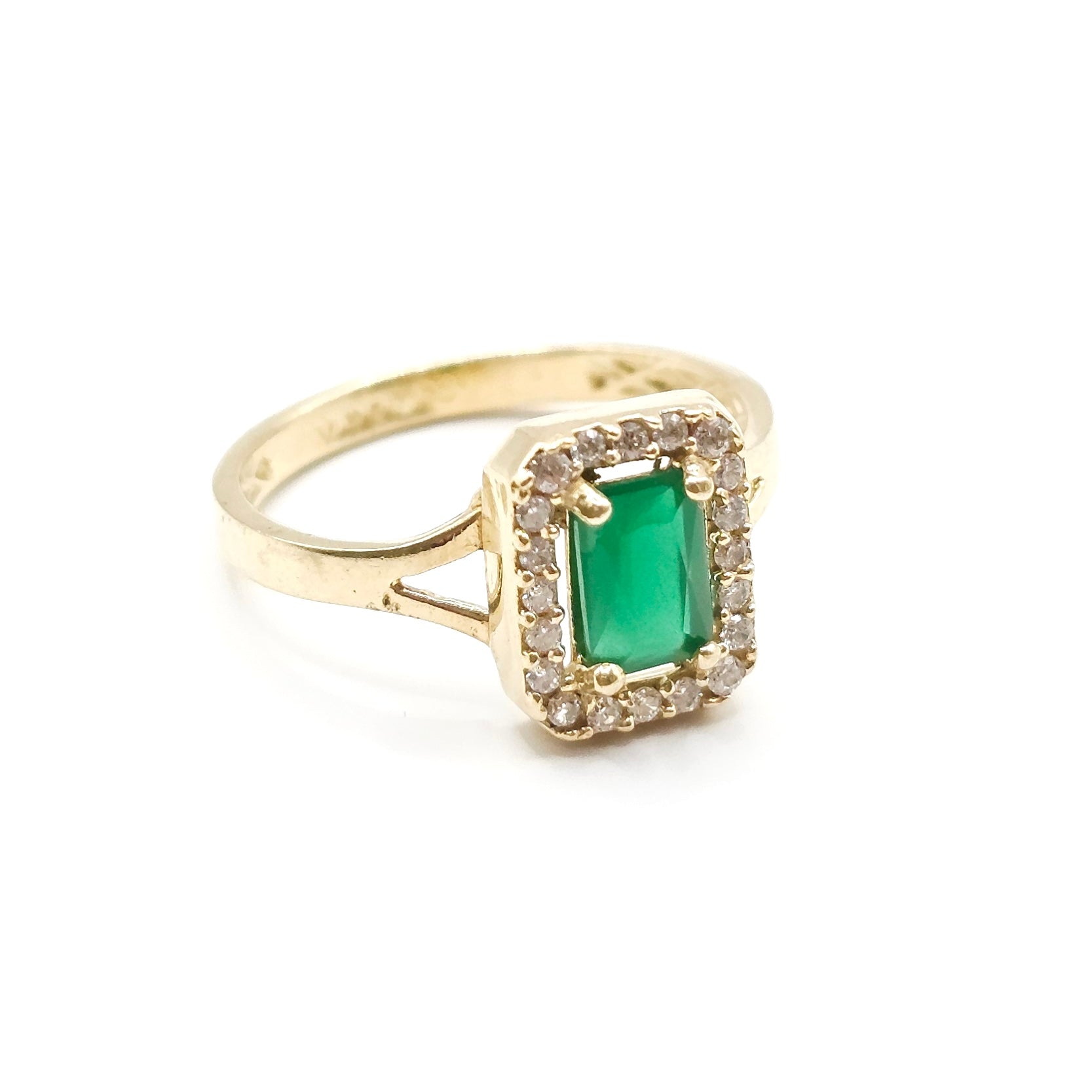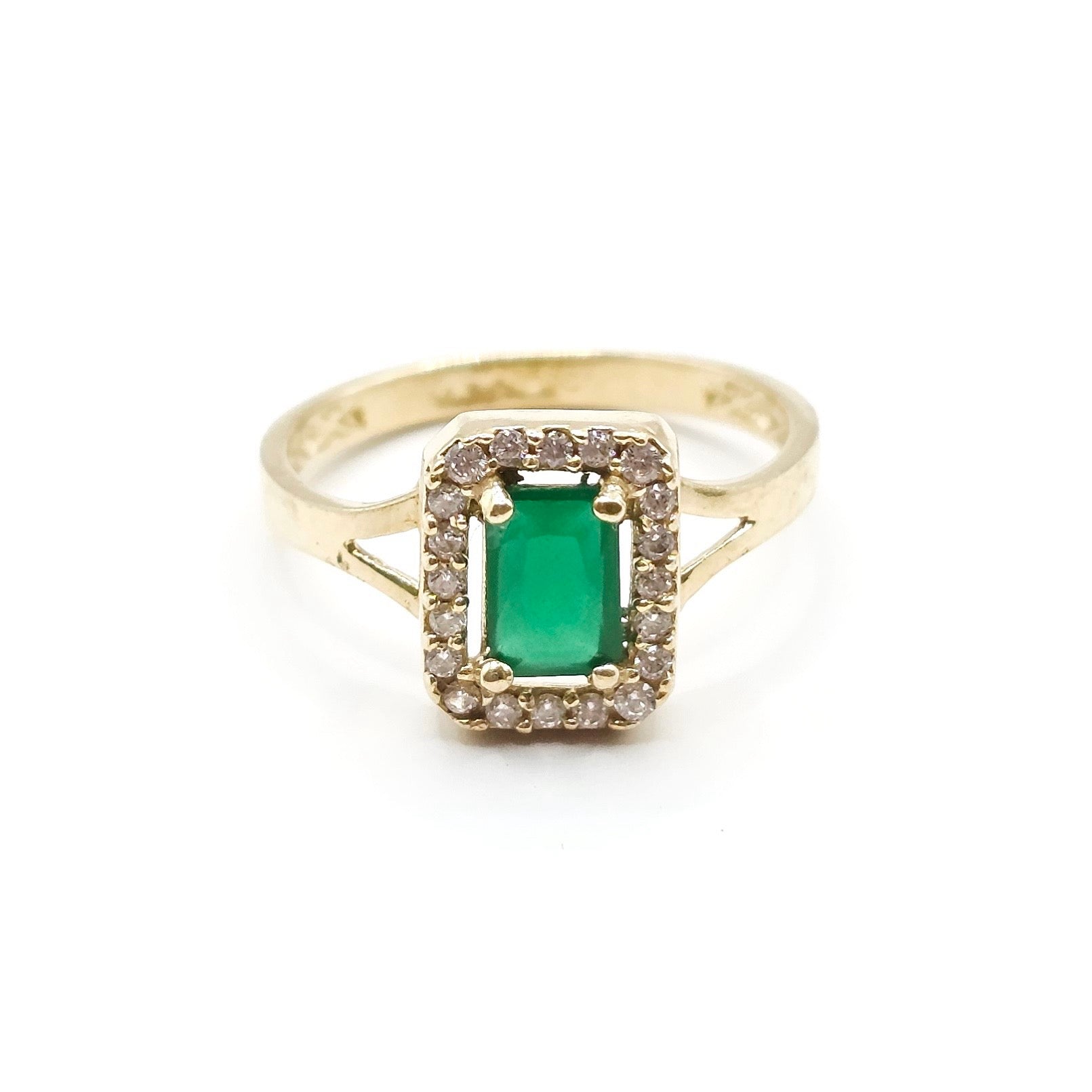 Anillo con ágata verde y zirconias blancas en oro sólido 10k