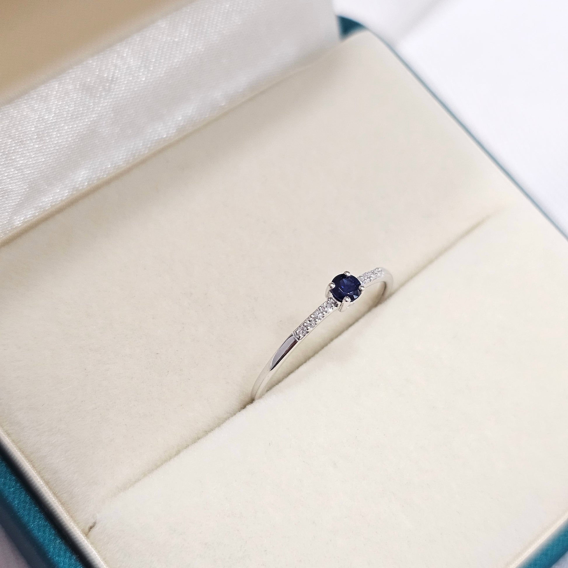 Anillo con 16 puntos de Zafiro natural y 4 puntos totales de Diamantes naturales en oro blanco 14k