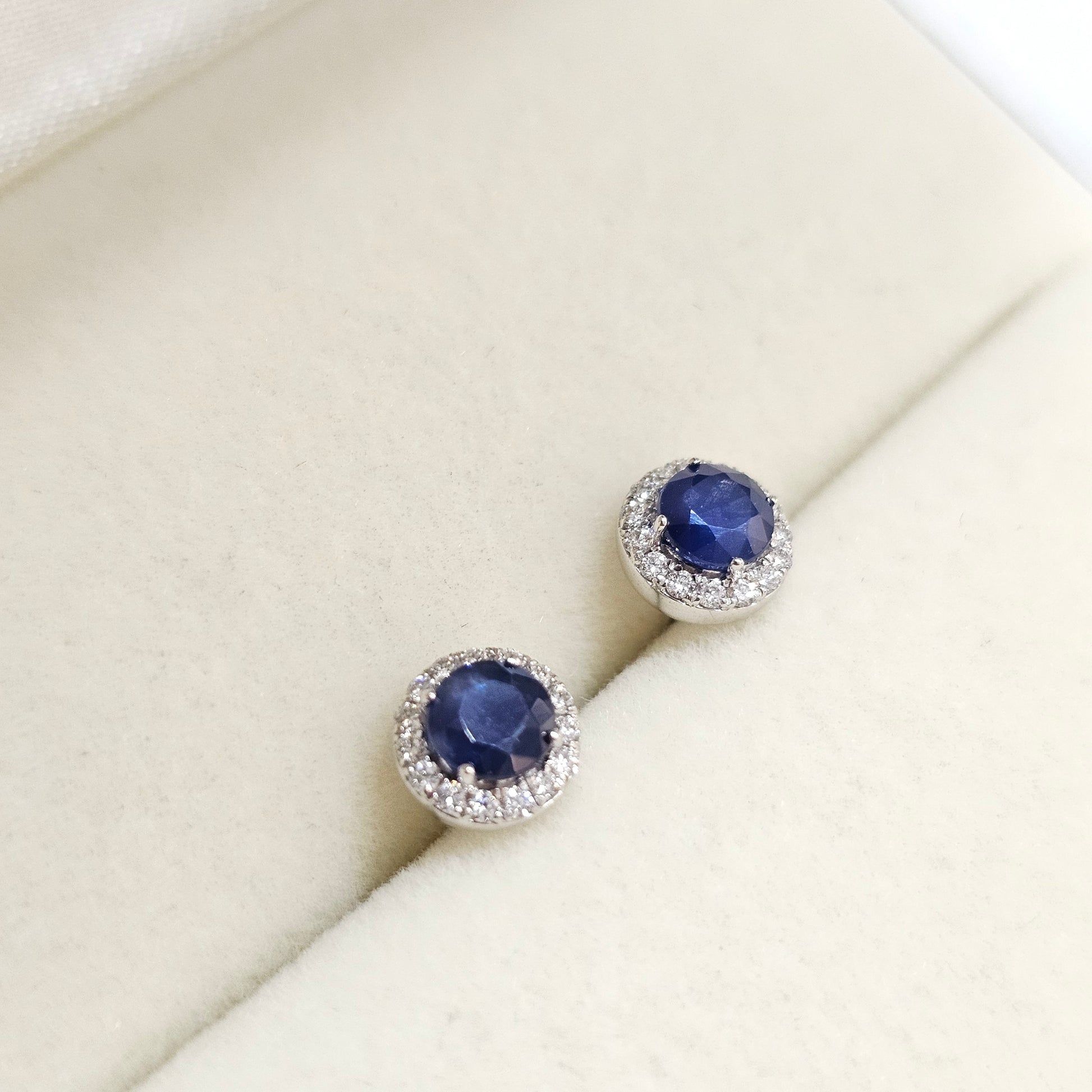 Aretes con 66 puntos totales de Zafiros naturales y 12 puntos totales de Diamantes naturales en oro blanco 14k.