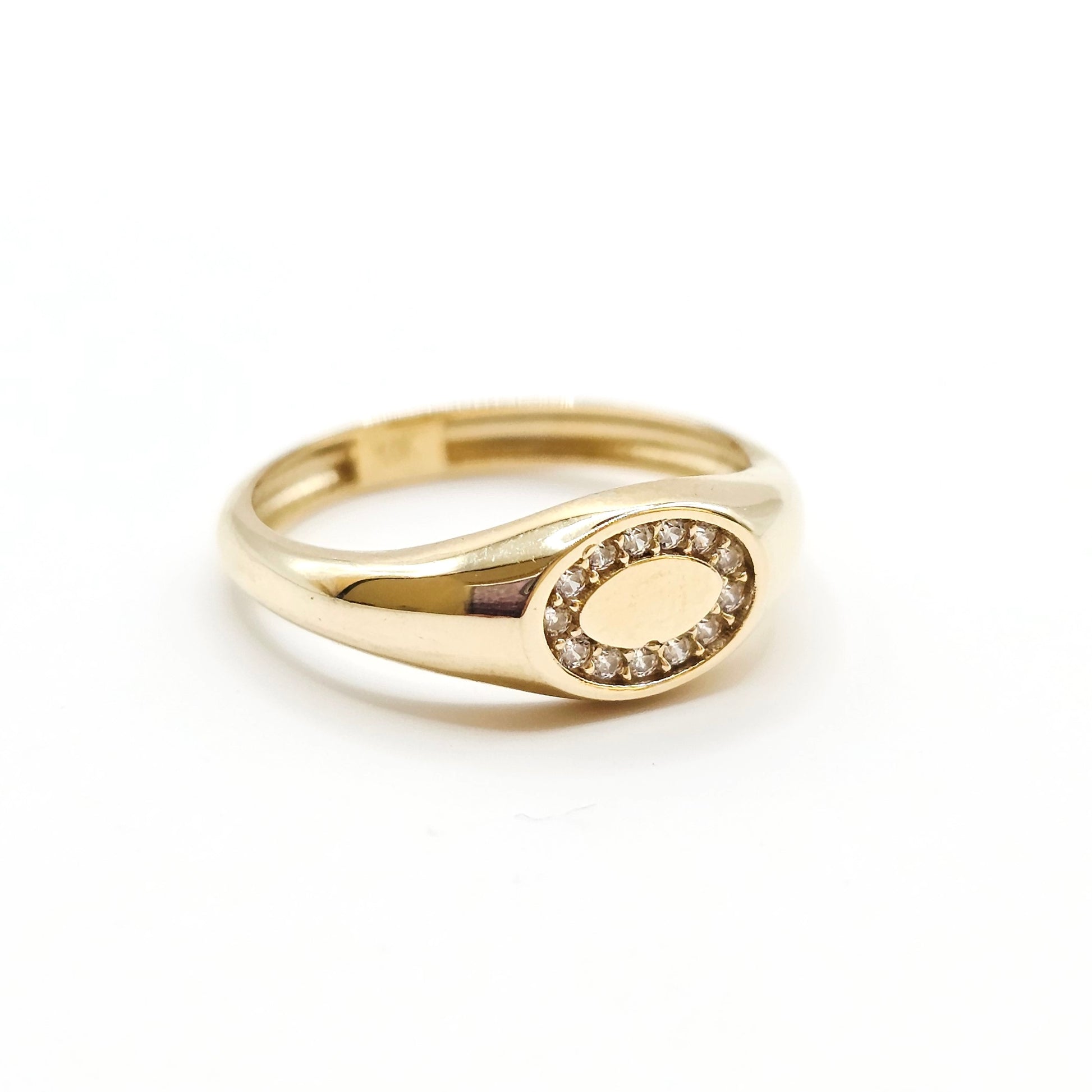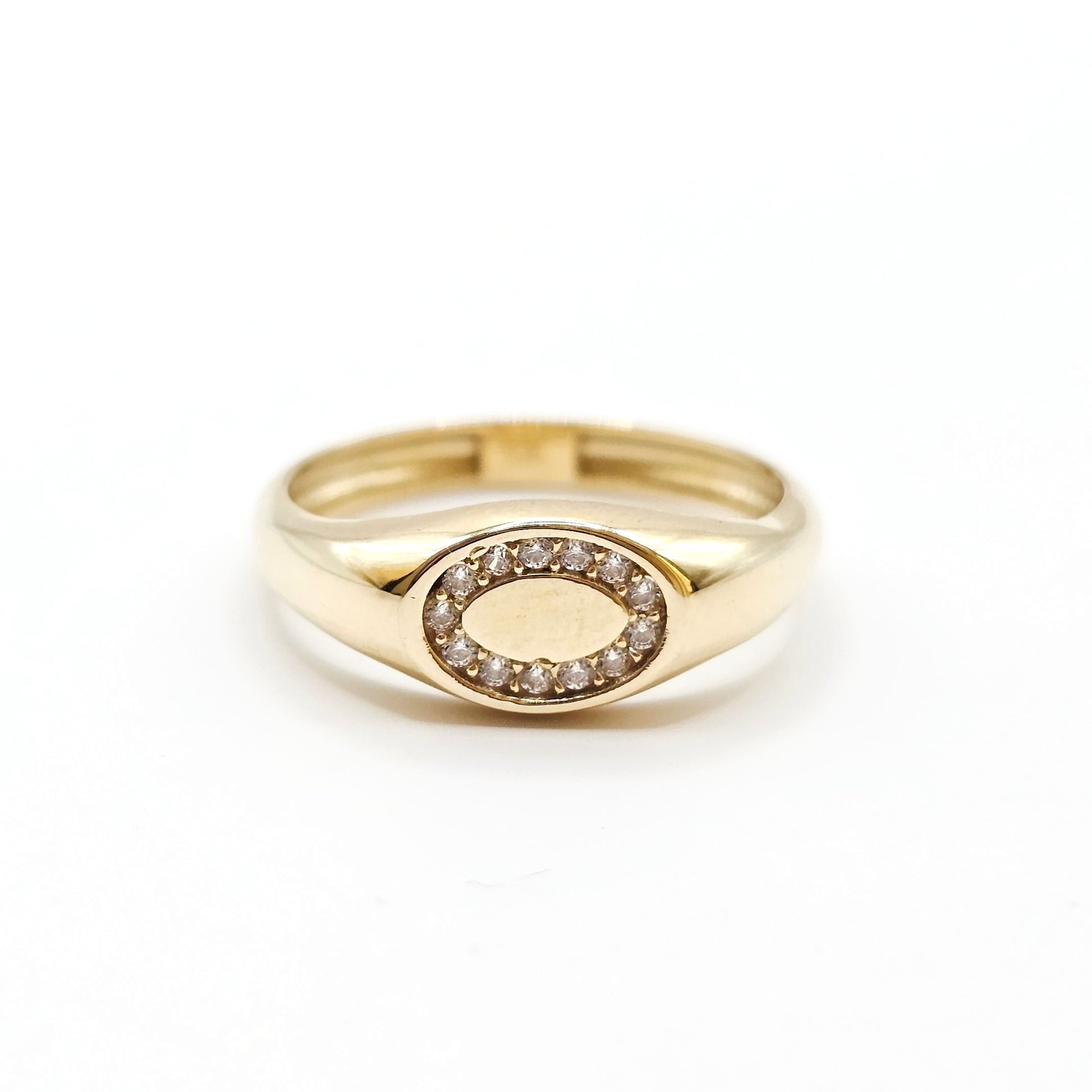 Anillo personalizable de plancha con zirconias en oro sólido 10k