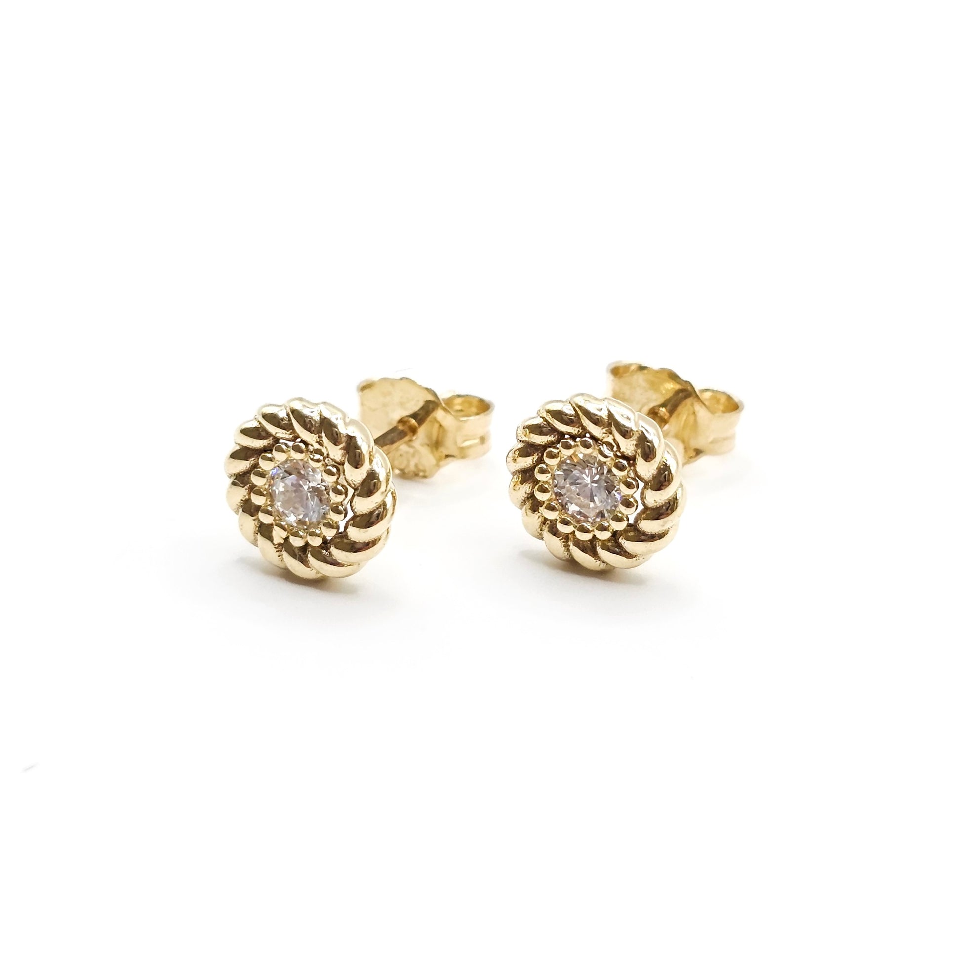 Aretes con zirconia en oro sólido 10K