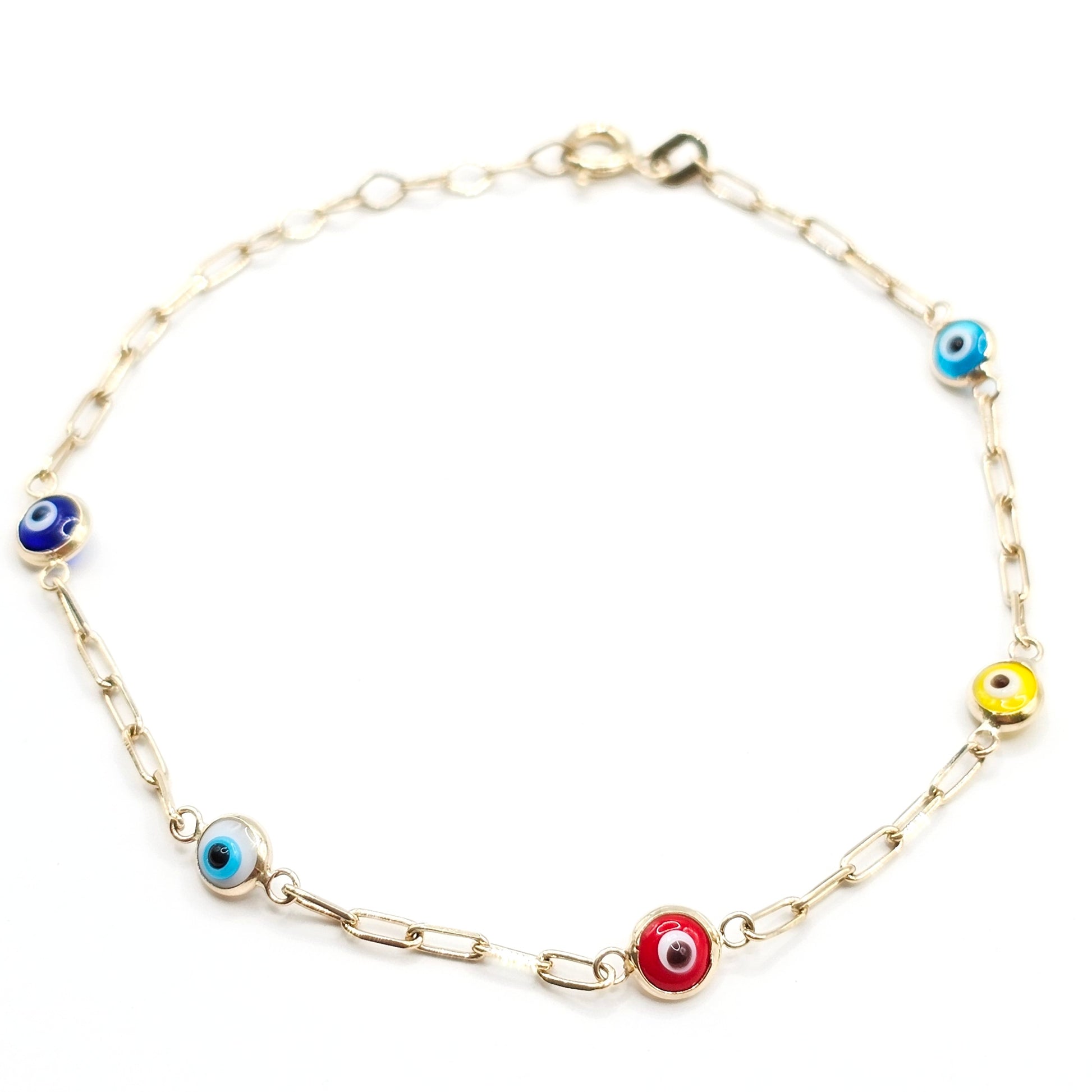 Pulsera con ojos turcos en oro sólido 10k