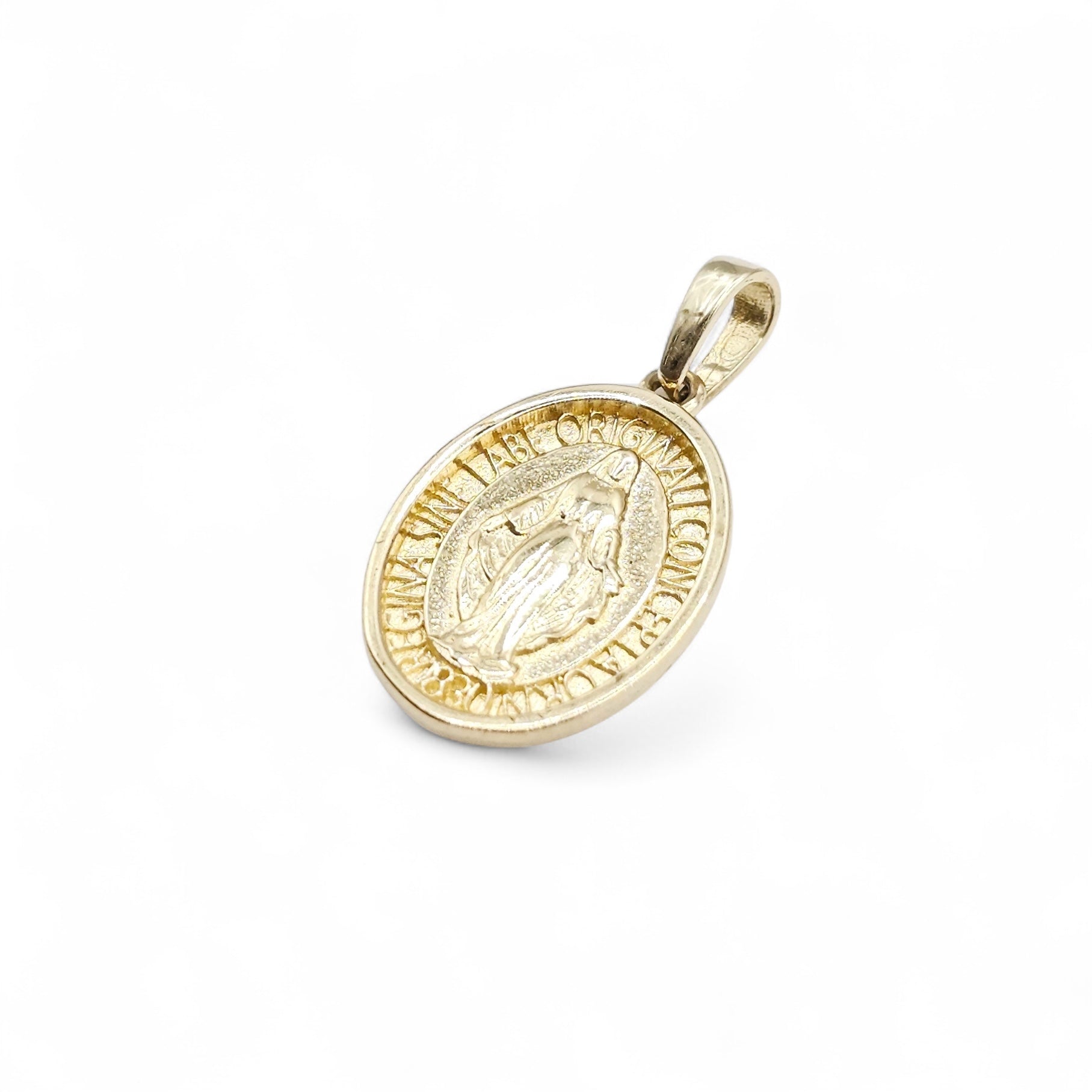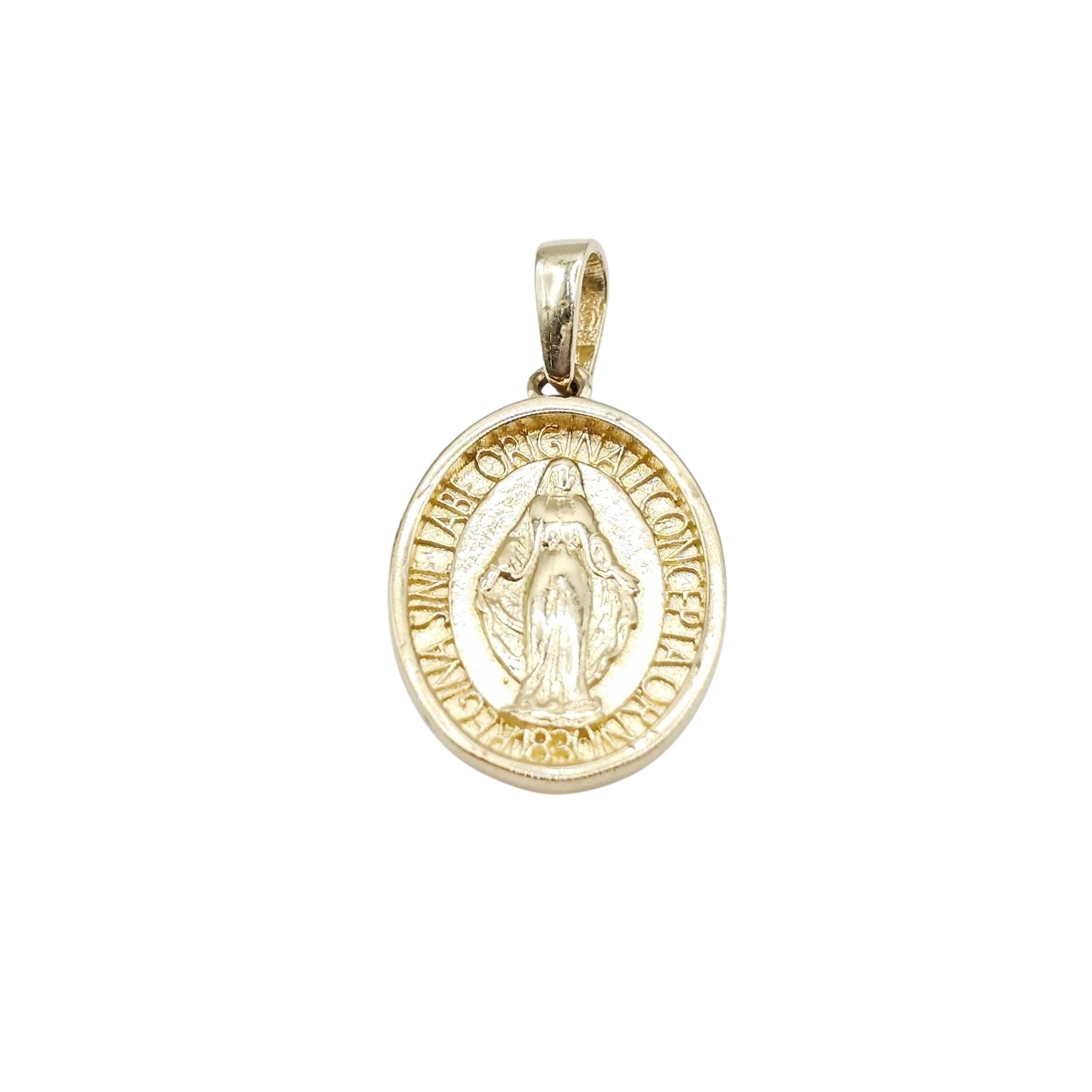Dije de la Virgen Milagrosa con zirconias en oro sólido 10k